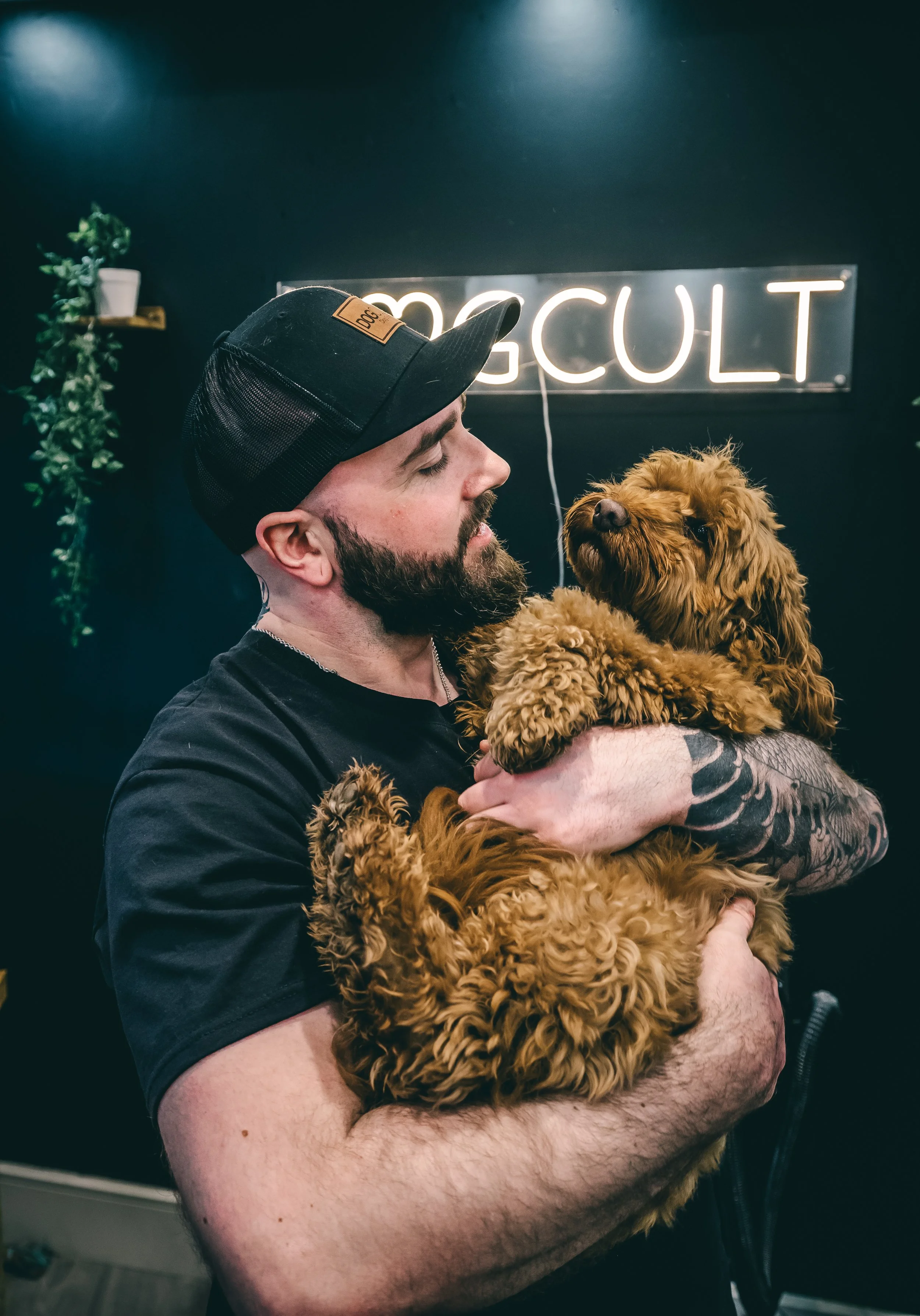We stepped right away from the clinical look. Instead, we leaned into deep moody tones, glowing neon, and the raw, quiet moments of connection. We focussed on the genuine affection Chris shows the dogs, and the completely relaxed, grounded way they respond to his energy.